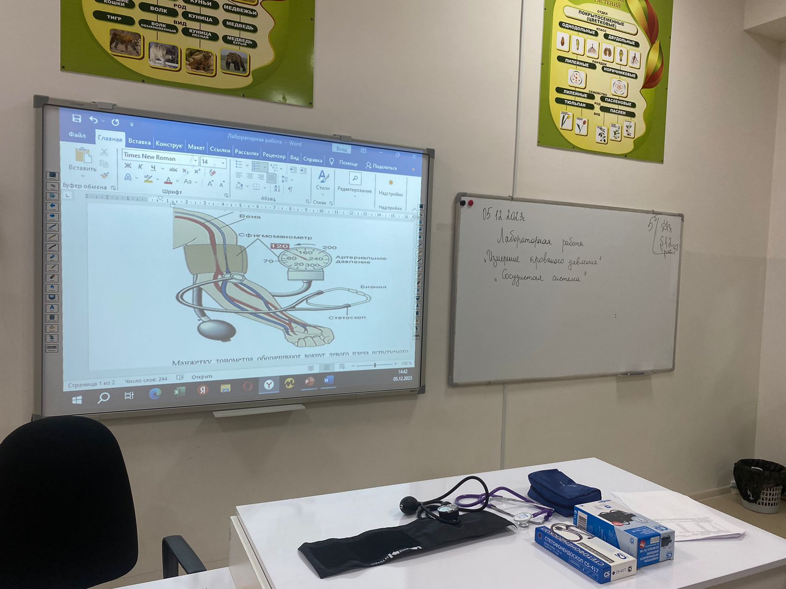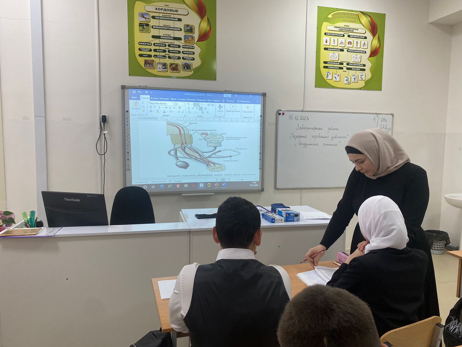 Учитель биологии Эльмурзаева Зарина Л., провела лабораторную работу в 9-ом классе «Измерение кровяного давления»Цели занятия: Познакомиться с прибором и правилами измерения кровяного давления.Оборудование:Прибор для измерения давления (тонометр)..