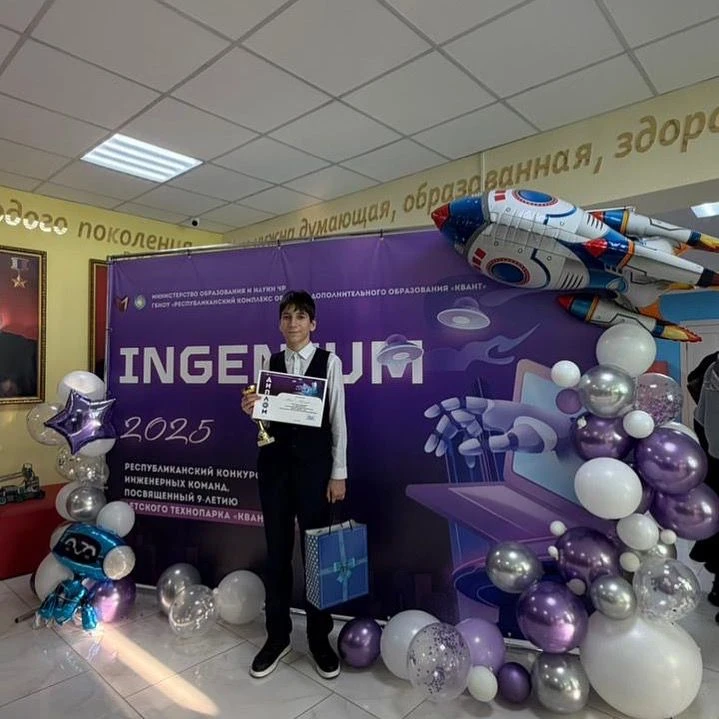 29.12.2025С радостью поздравляем Абасова Абубакара с заслуженным III местом в Республиканском конкурсе инженерных команд «INGENIUM – 2025» по направлению 3D-моделирование!